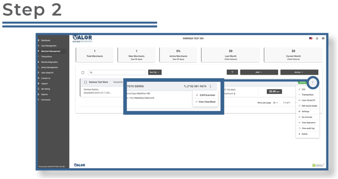 Search for the merchant, select the ellipsis (⋮) on the top right of the snapshot, then click Edit.
