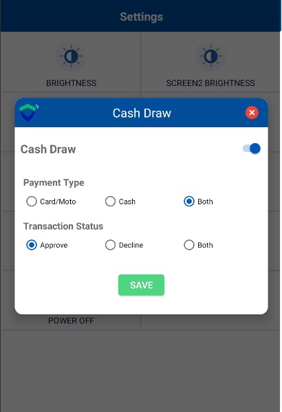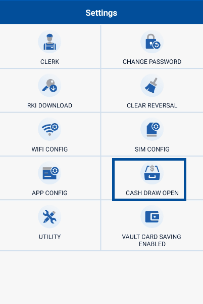 4. In the terminal, the cash drawer can be manually opened by navigating to the settings and selecting the "CASH DRAW OPEN" option. This option allows control over the cash drawer mechanism.