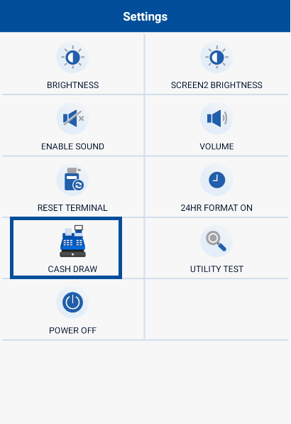 Access the Terminal's Settings -> Utility -> Cash Draw menu.