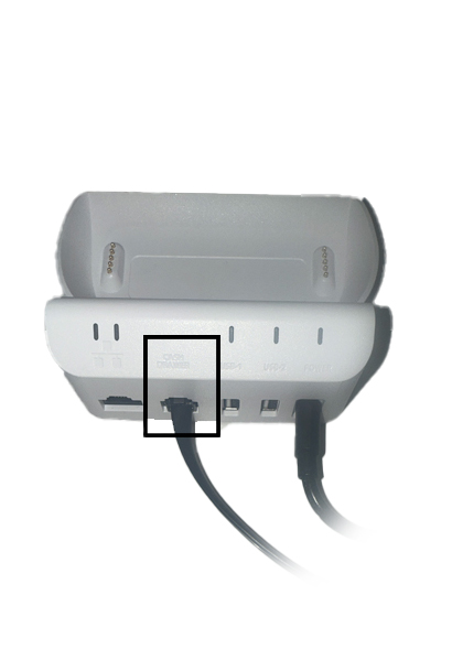 - Connect the cash drawer via RJ11/RJ12 Cable to the Cash Drawer port on the multi-Comm Hub.