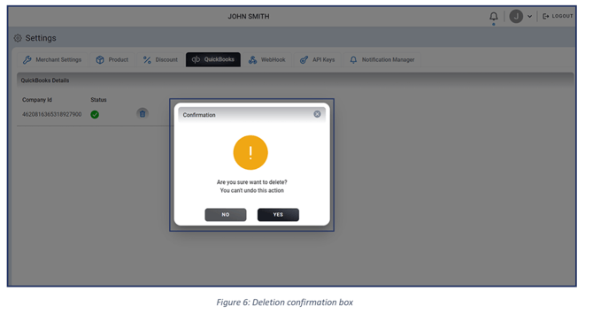 To remove an integrated QuickBooks ID, click the Delete icon. Confirm when prompted.